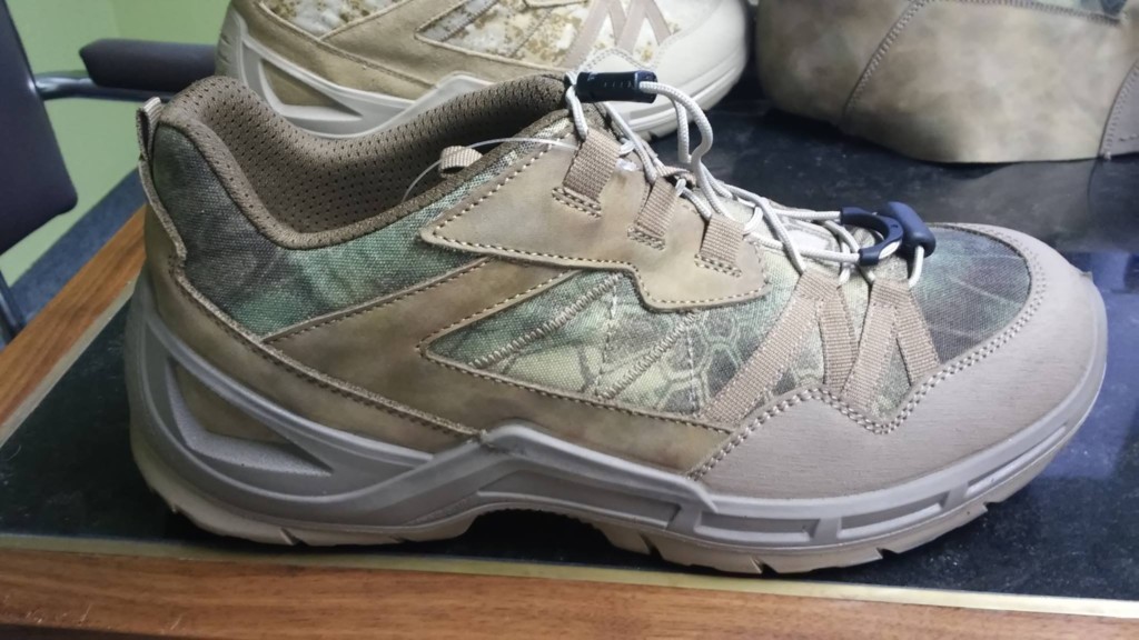 Obuv sportovního střihu ve dvou verzích (kotníková a polobotka) a v několika barevných provedeních – Kryptek Mandrake, Pencott GreenZone a SandStorm, Tan, šedá a černá.